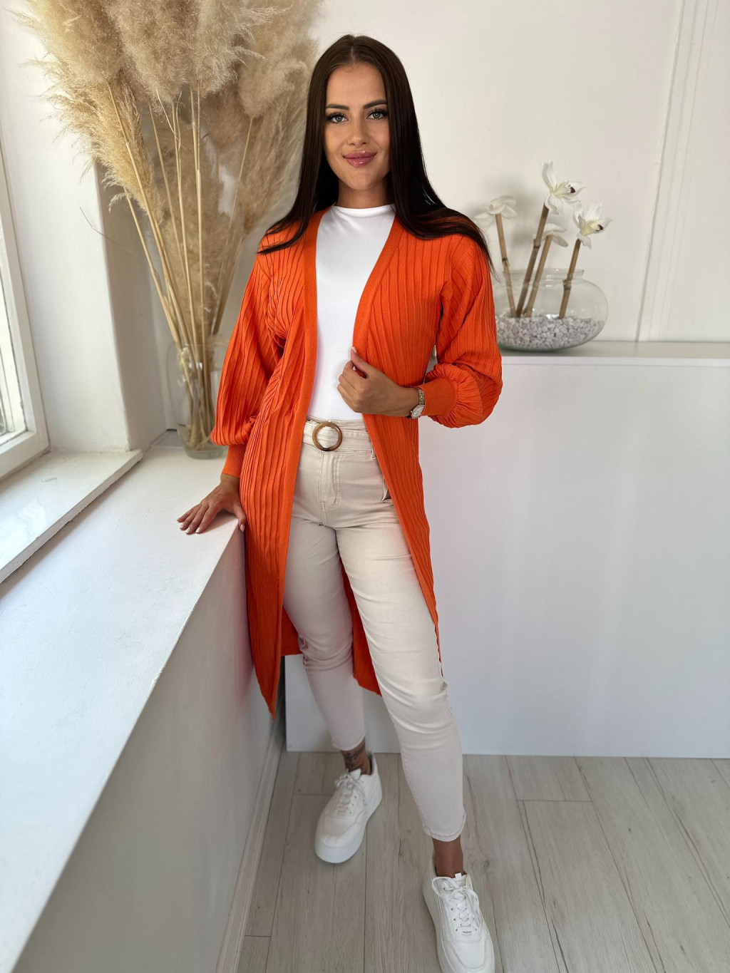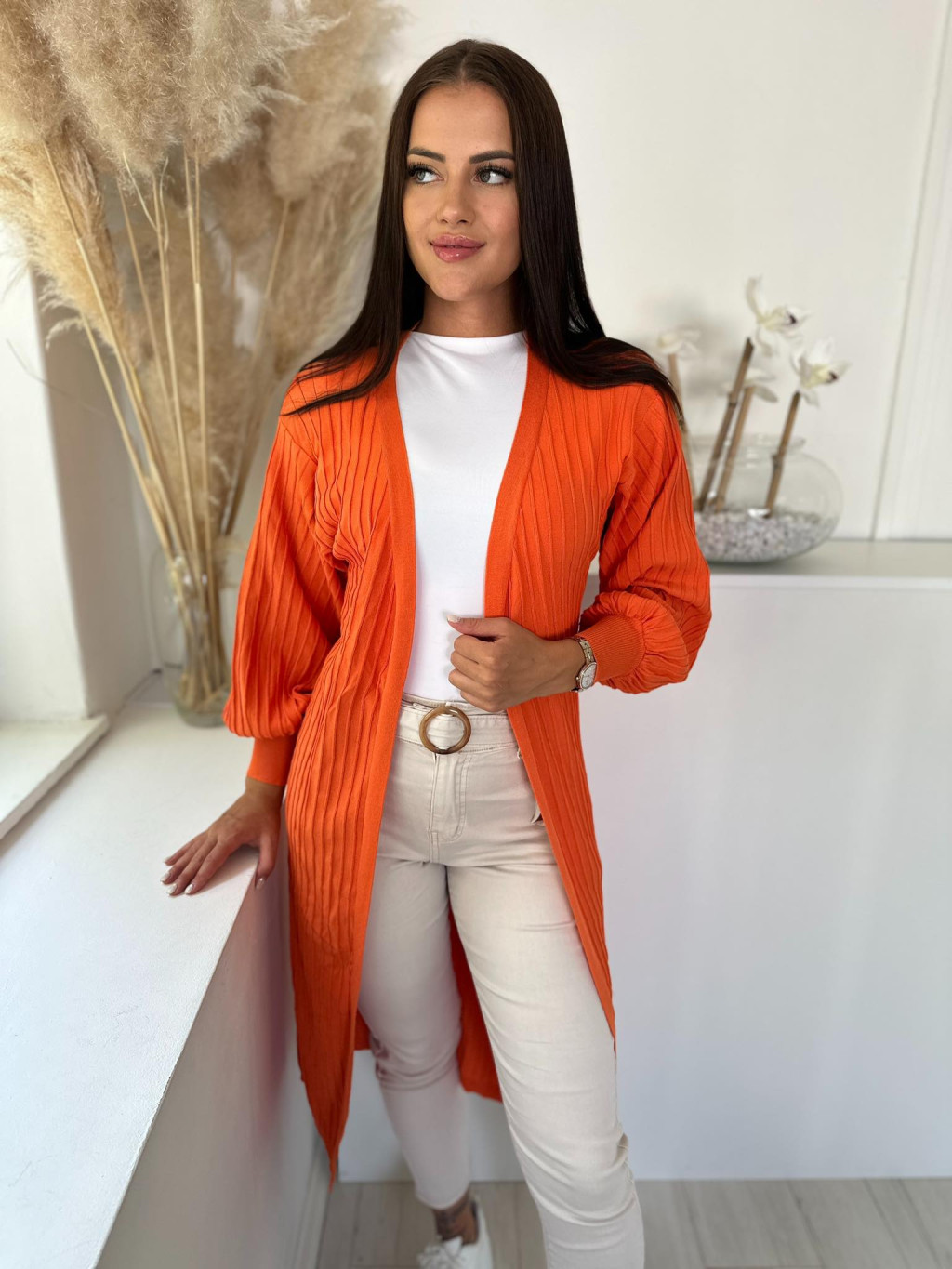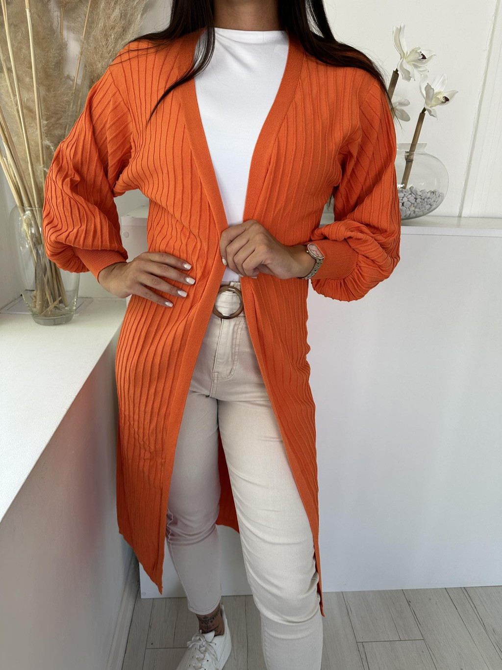 Rugalmas, bordás anyagú, vékony kötött kardigán. (S-XL méretre ajánljuk.)