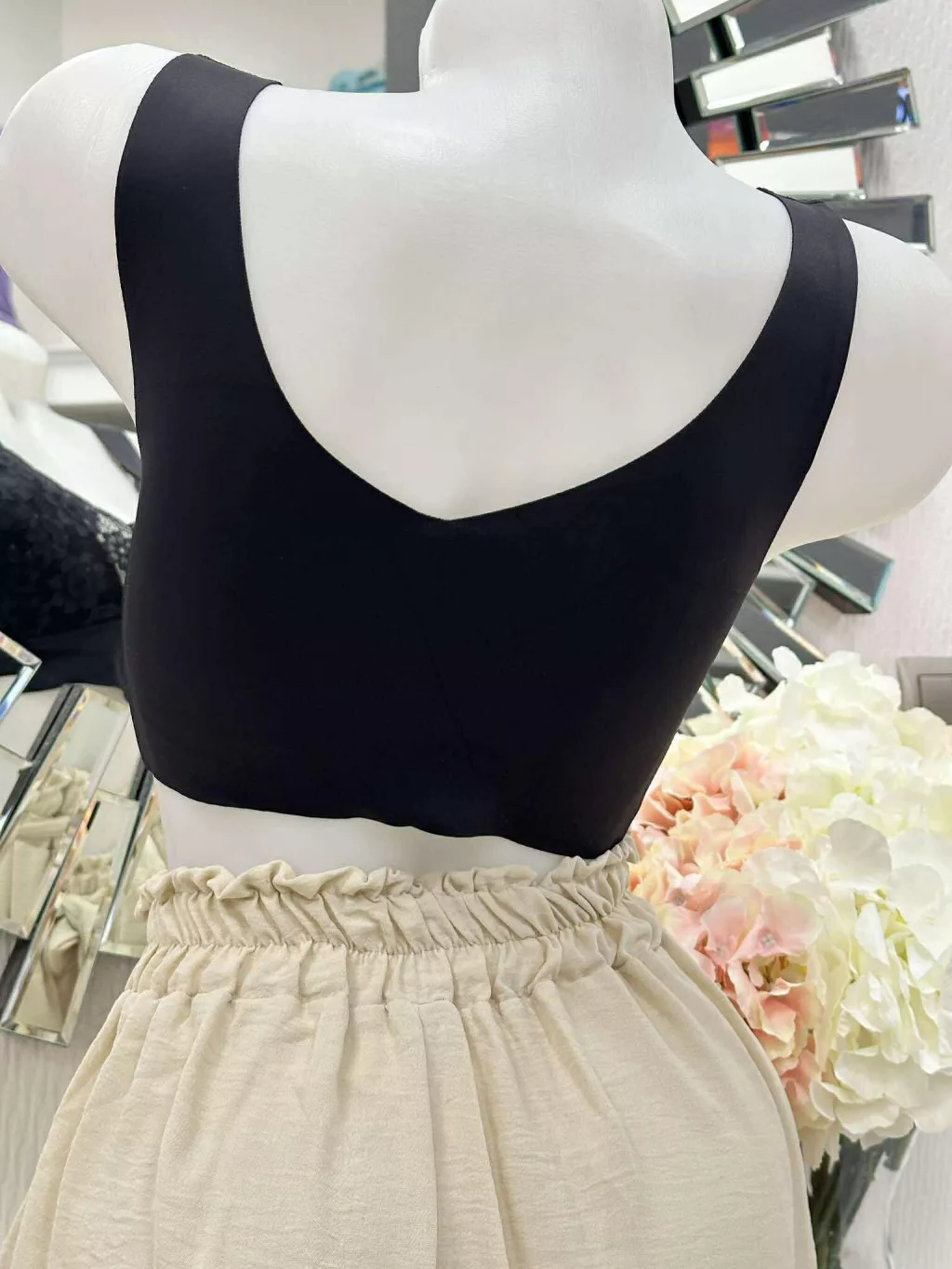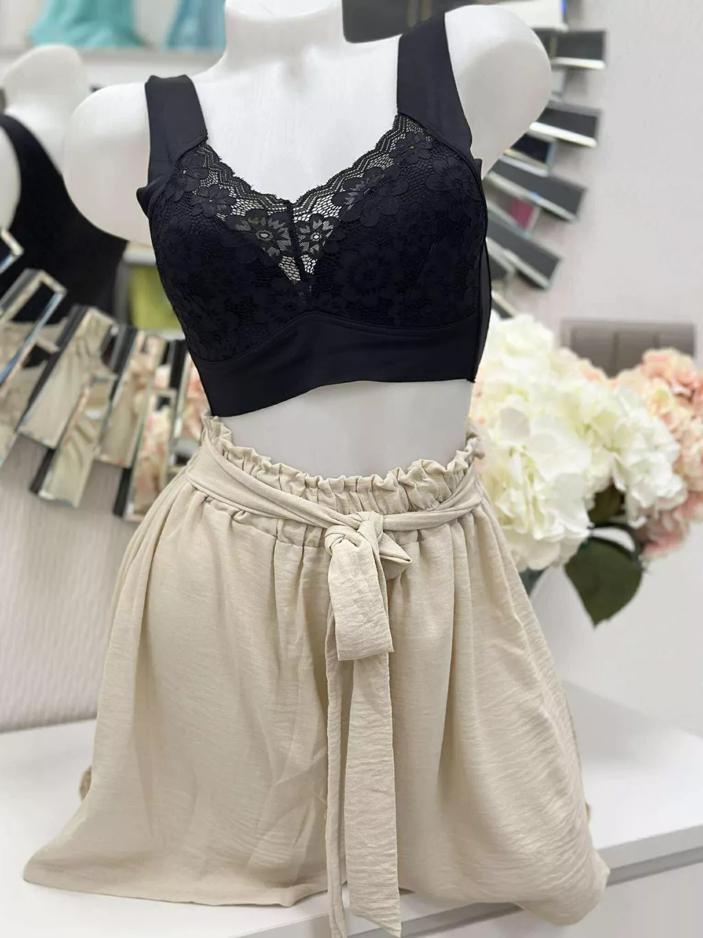 Lézervágott, mikroszálas, rugalmas anyagú, szivacsbetétes, csipkés bralette melltartó. Merevítő nélkül. M és L méretekben.