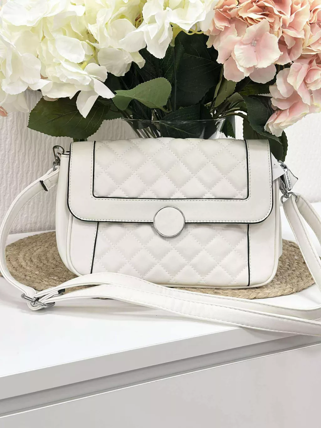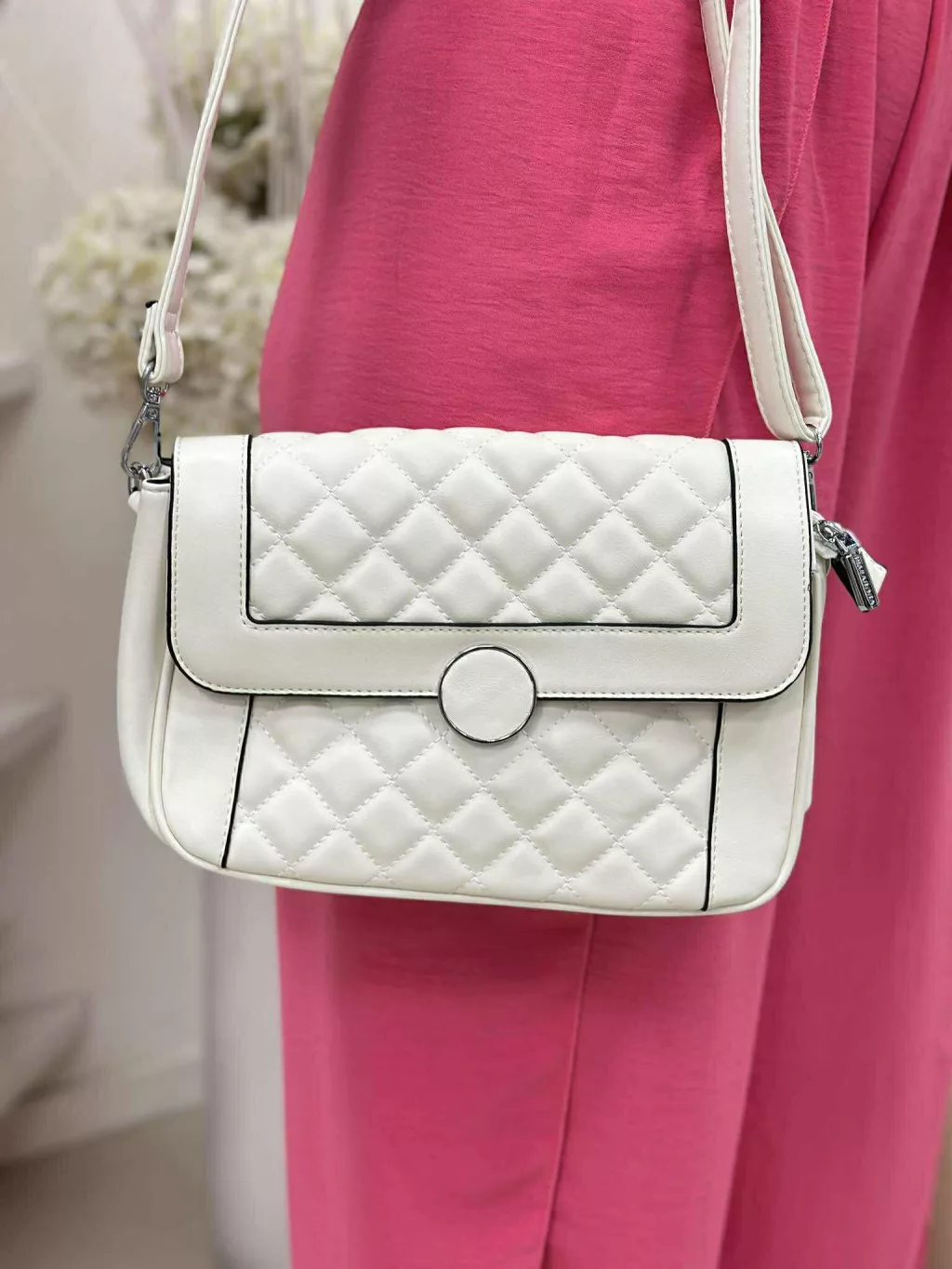 Puha, műbőr táska, levehető hosszú pánttal. Szélesség: 27 cm Magasság: 15,5 cm.
